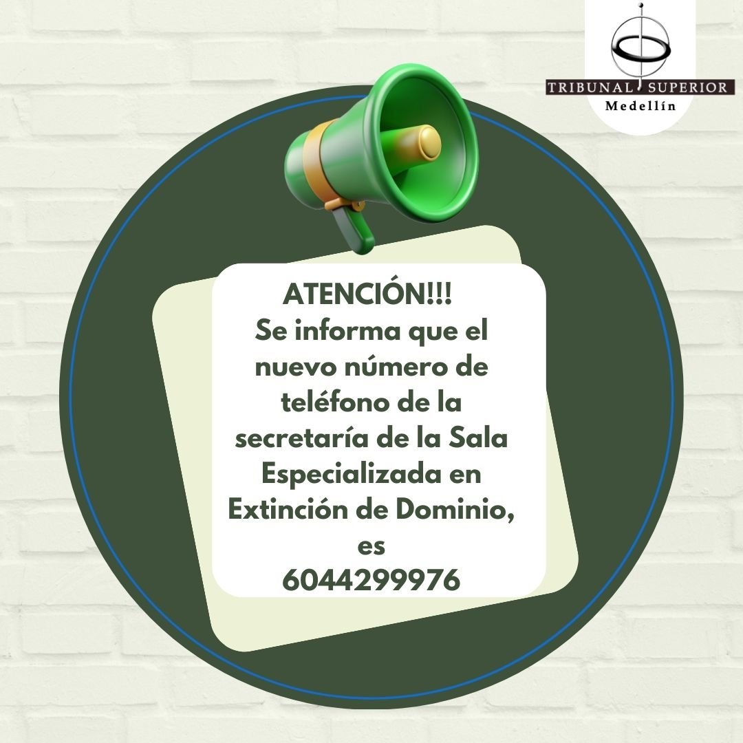 Se informa el nuevo número de teléfono de la secretaría de la Sala Especializada en Extinción de Dominio