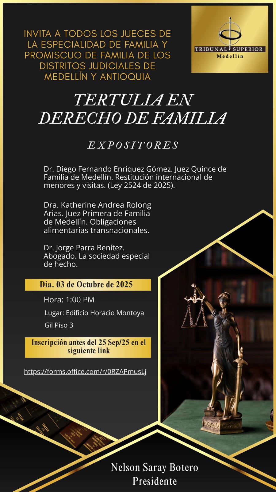 Inscripciones (SOLO PARA LOS JUECES DE LA ESPECIALIDAD DE FAMILIA Y PROMISCUO DE FAMILIA DE LOS DISTRITOS JUDICIALES DE MEDELLÍN Y ANTIOQUIA)