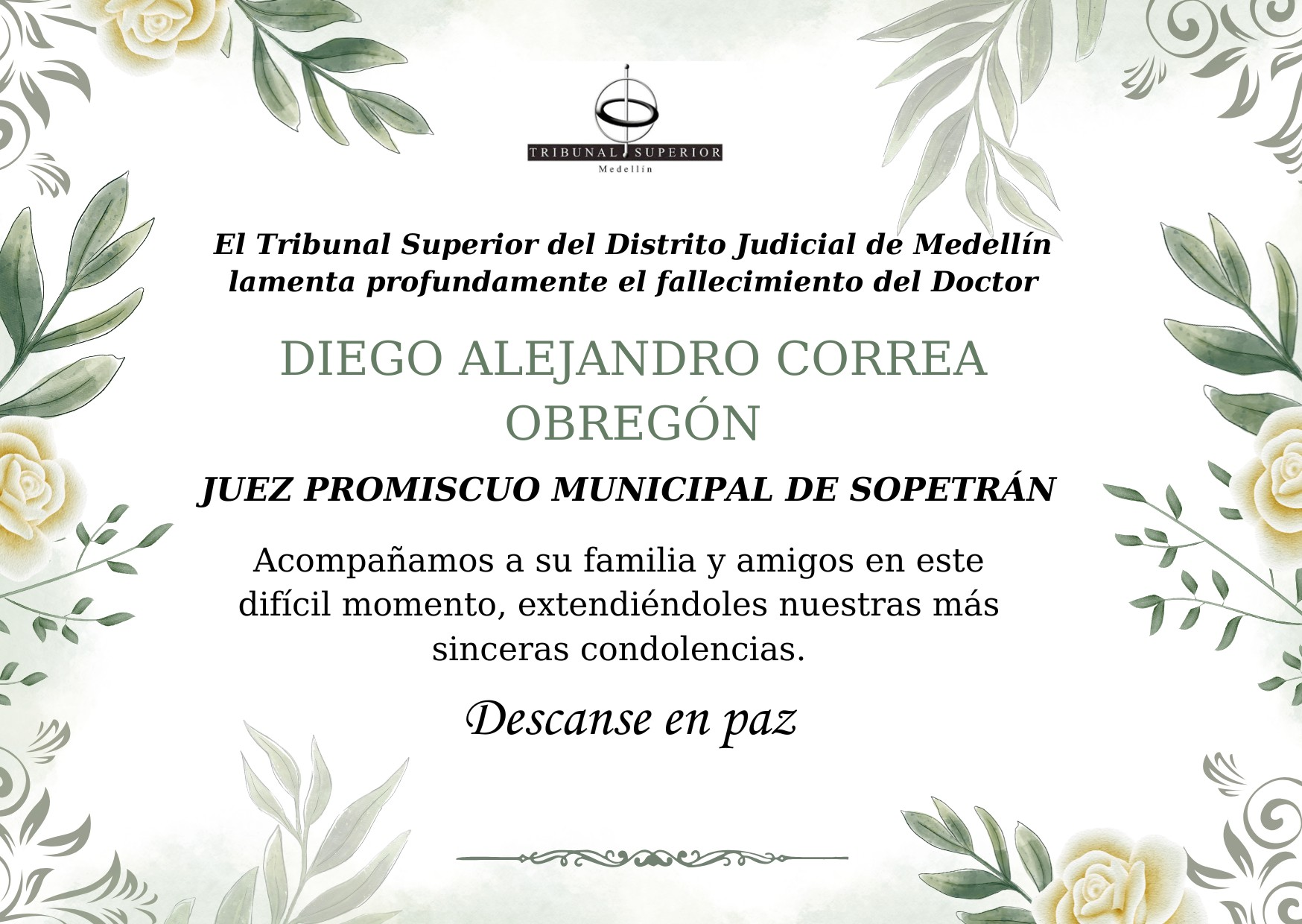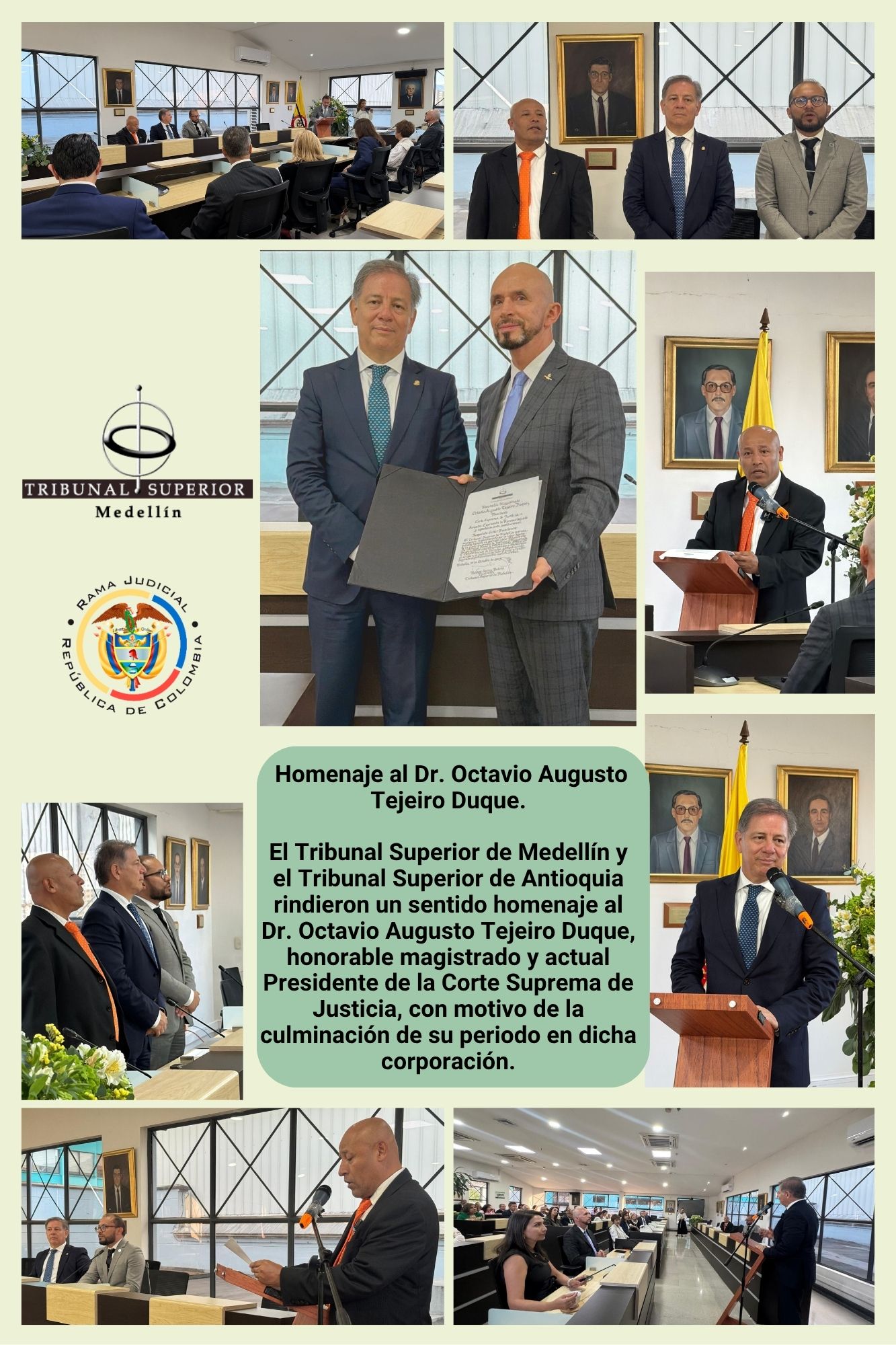 En Medellín, el día 27 de octubre de 2025, se llevó a cabo un acto conmemorativo organizado por la Corte Suprema de Justicia, el Tribunal Superior de Medellín, el Tribunal Superior de Antioquia, el Distrito Especial de Medellín y la Gobernación de Antioquia, en memoria de quienes ofrendaron su vida por la justicia, la paz y los derechos fundamentales de Colombia.