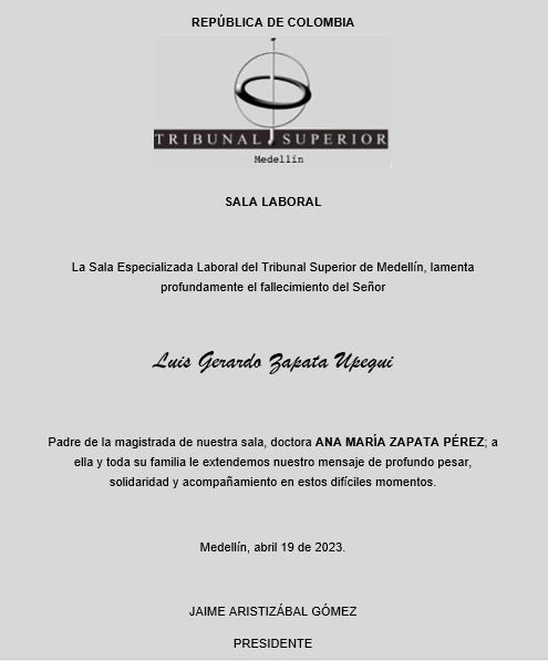 La Sala Especializada del Tribunal Superior de Medellín, lamenta profundamente el fallecimiento del señor
