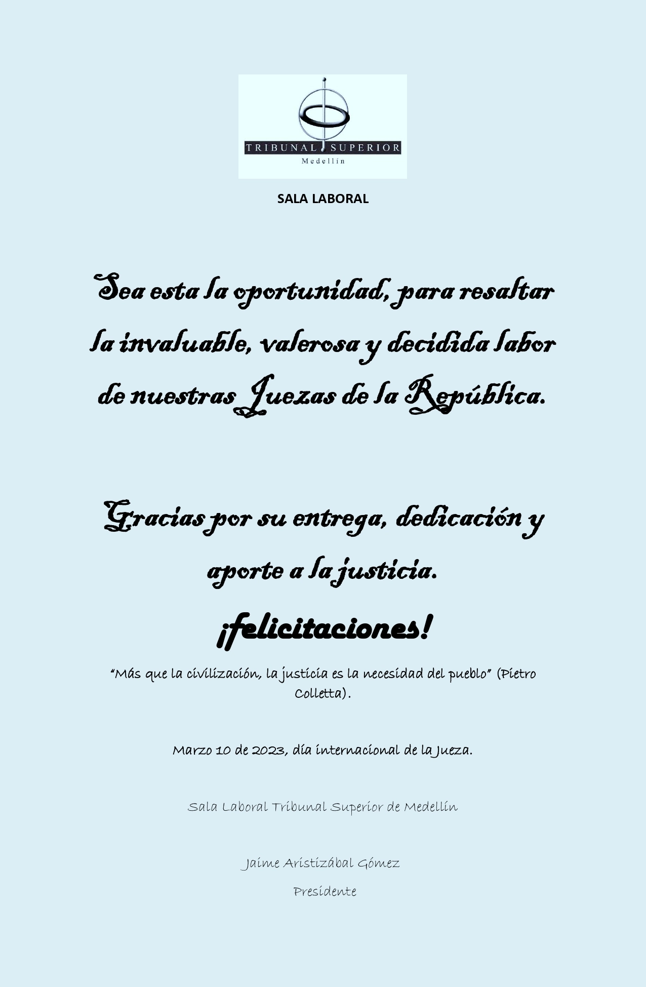 Sea esta la oportunidad para resaltar la invaluable, valerosa y decidida labor de nuestras Juezas de la república